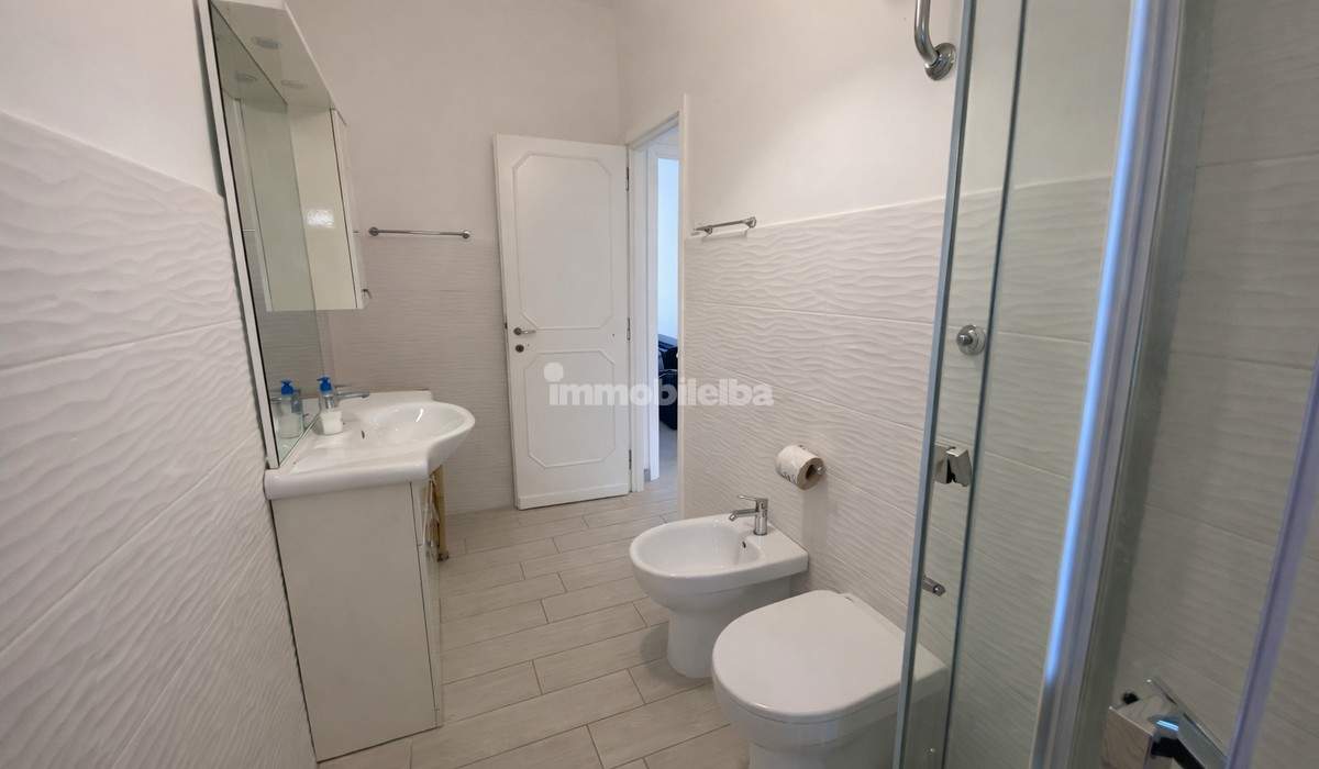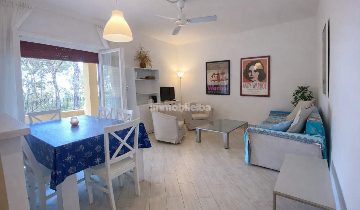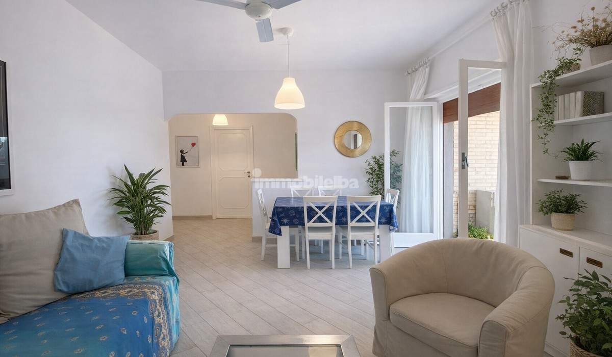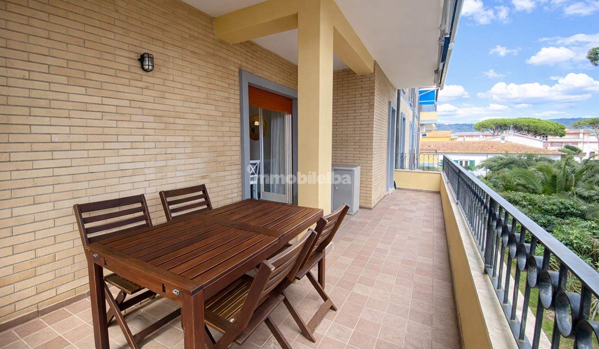 Just 50 meters from the beach of Marina di Campo, easily accessible via a pedestrian path adjacent to the condominium, this spacious and bright apartment is located on the first floor. The apartment has an area of about 100 square meters and consists of an entrance hallway, a large living room with access to a terrace of approximately 15 square meters with a view of the sea and the town's beach, a habitable kitchen also with access to the terrace, a storage room, two comfortable double bedrooms, one single bedroom, and two windowed bathrooms. The property has been renovated, does not have air conditioning, and due to its excellent beachfront location, it is a great opportunity for investment and rental income. It includes an annual rotating parking space in a communal area.